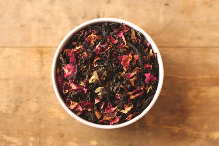 Medium sized bright greenish-brown leaves blended to perfection with the dried, pinkish-red rose petals. A premium blend which exudes the refreshing aroma of roses. |